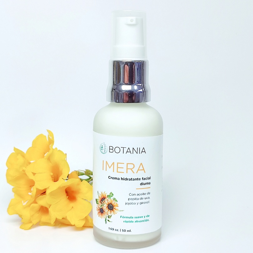 Imera, está formulada como hidratante para uso diurno. Es adecuado para todo tipo de piel, deja una sensación suave y de rápida absorción.