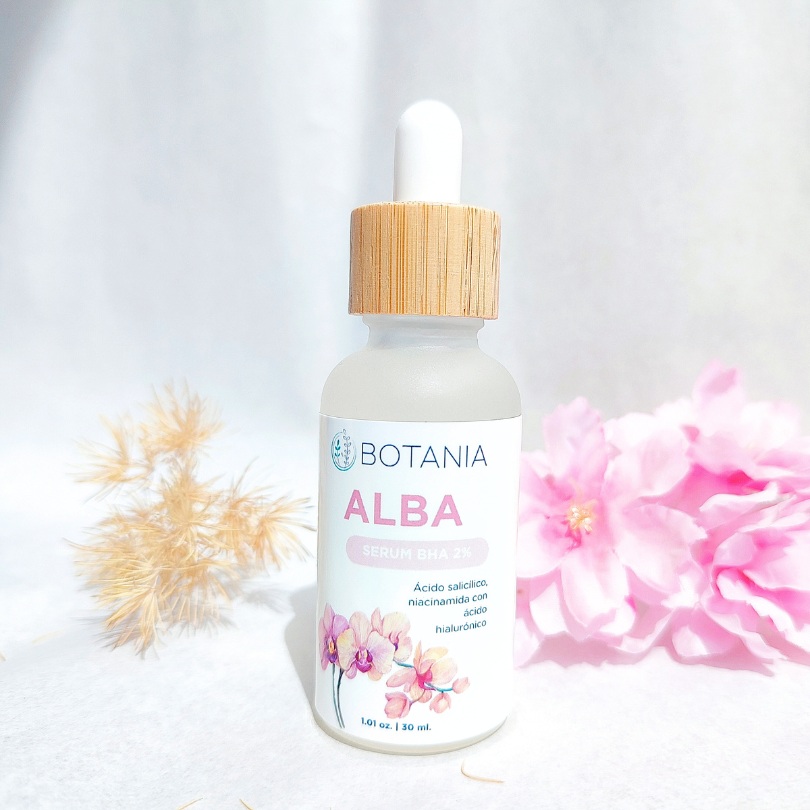 Alba sérum facial anti-acné contiene hamamelis, niacinamida, ácido salicílico al 2 % y ácido hialurónico el cual es capaz de llegar a las capas más profundas. Además, es un potente exfoliante, se encarga de disolver células muertas.